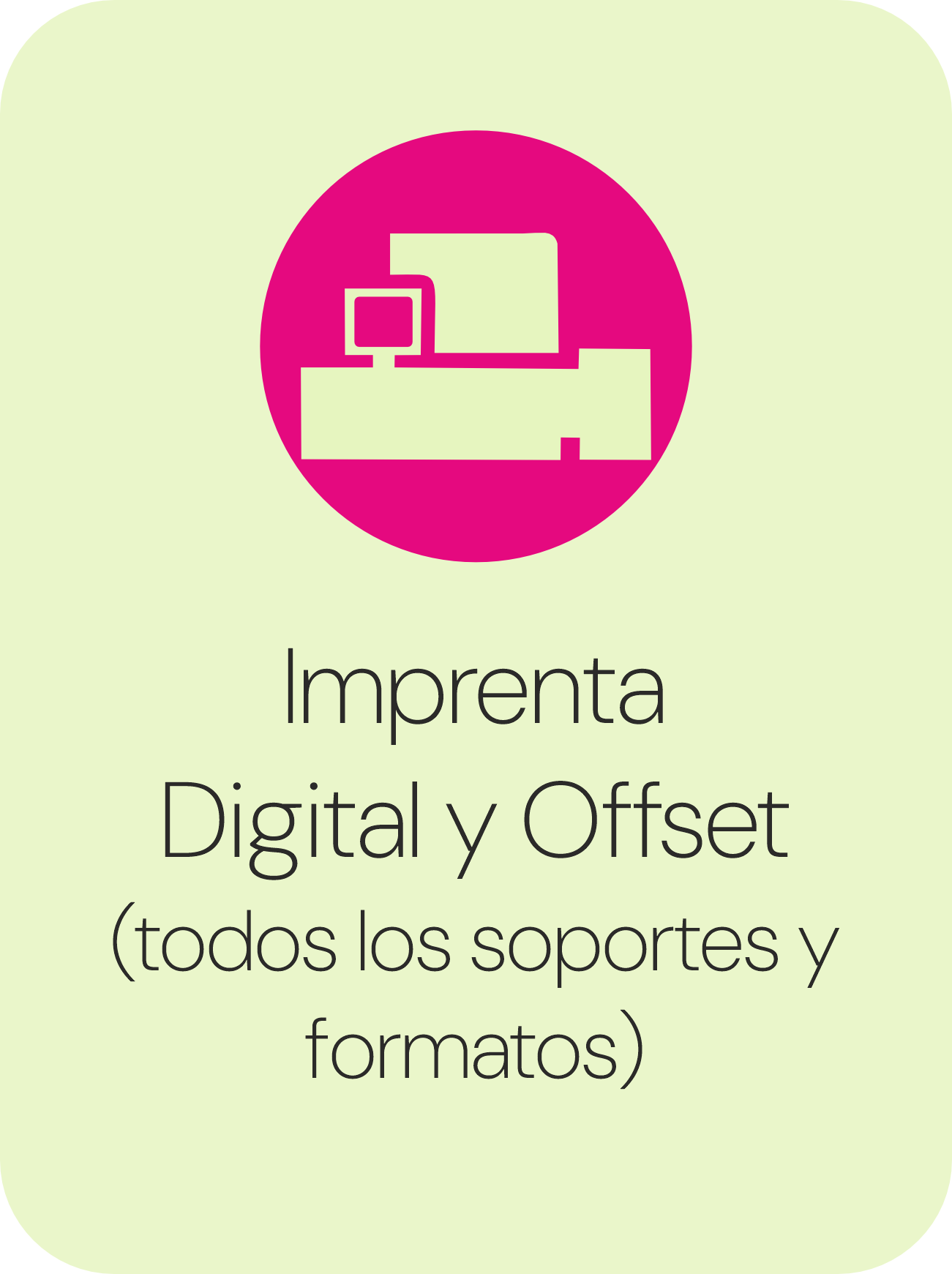 ![]() Alta calidad en todos los formatos y soportes. Impresión ágil, profesional y sin límites. Soluciones a medida para cada proyecto.