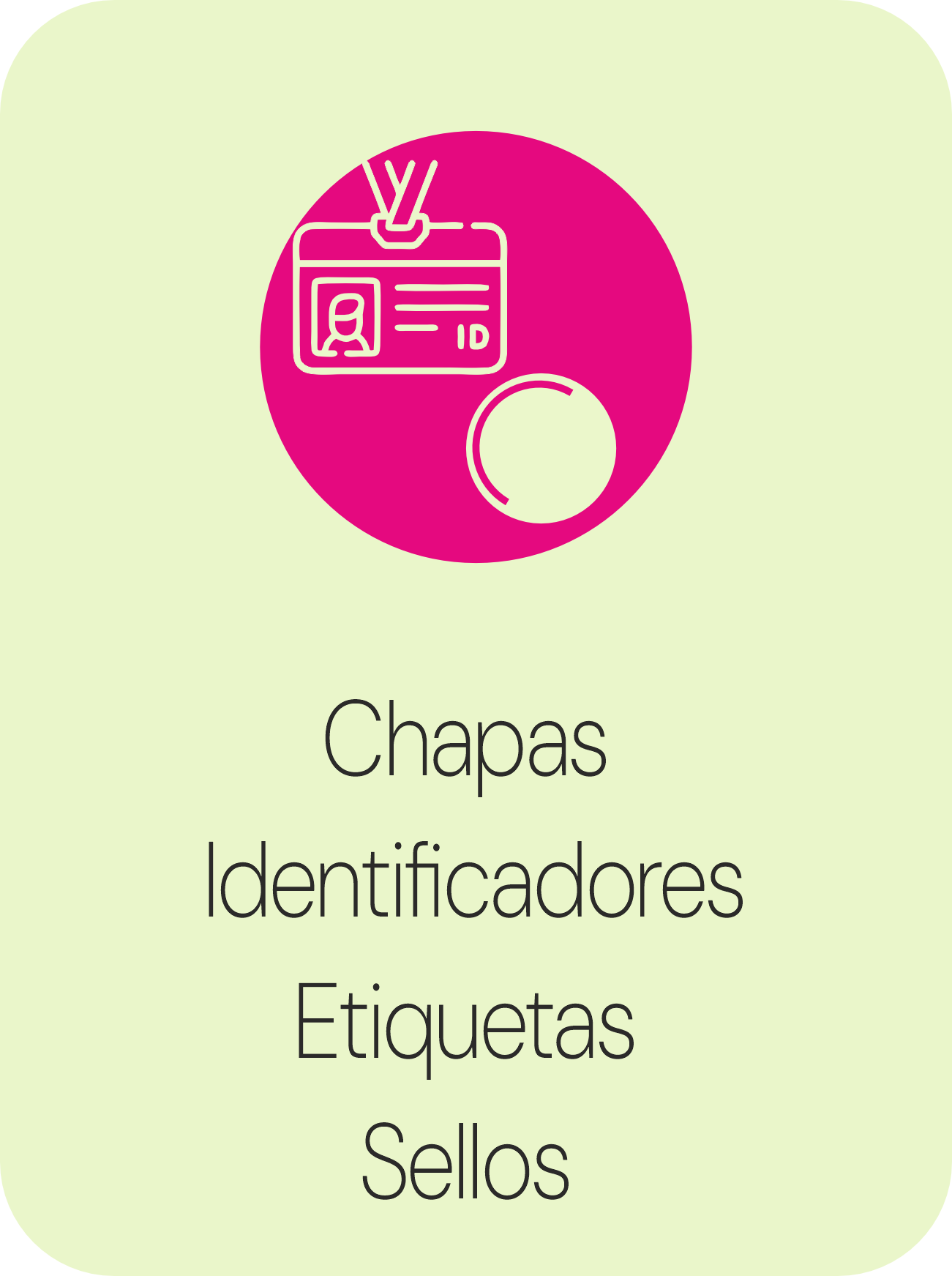 ![]() Todo lo que tu marca necesita para destacar. Chapas, sellos, etiquetas y credenciales. Soluciones prácticas, personalizadas y con estilo. |